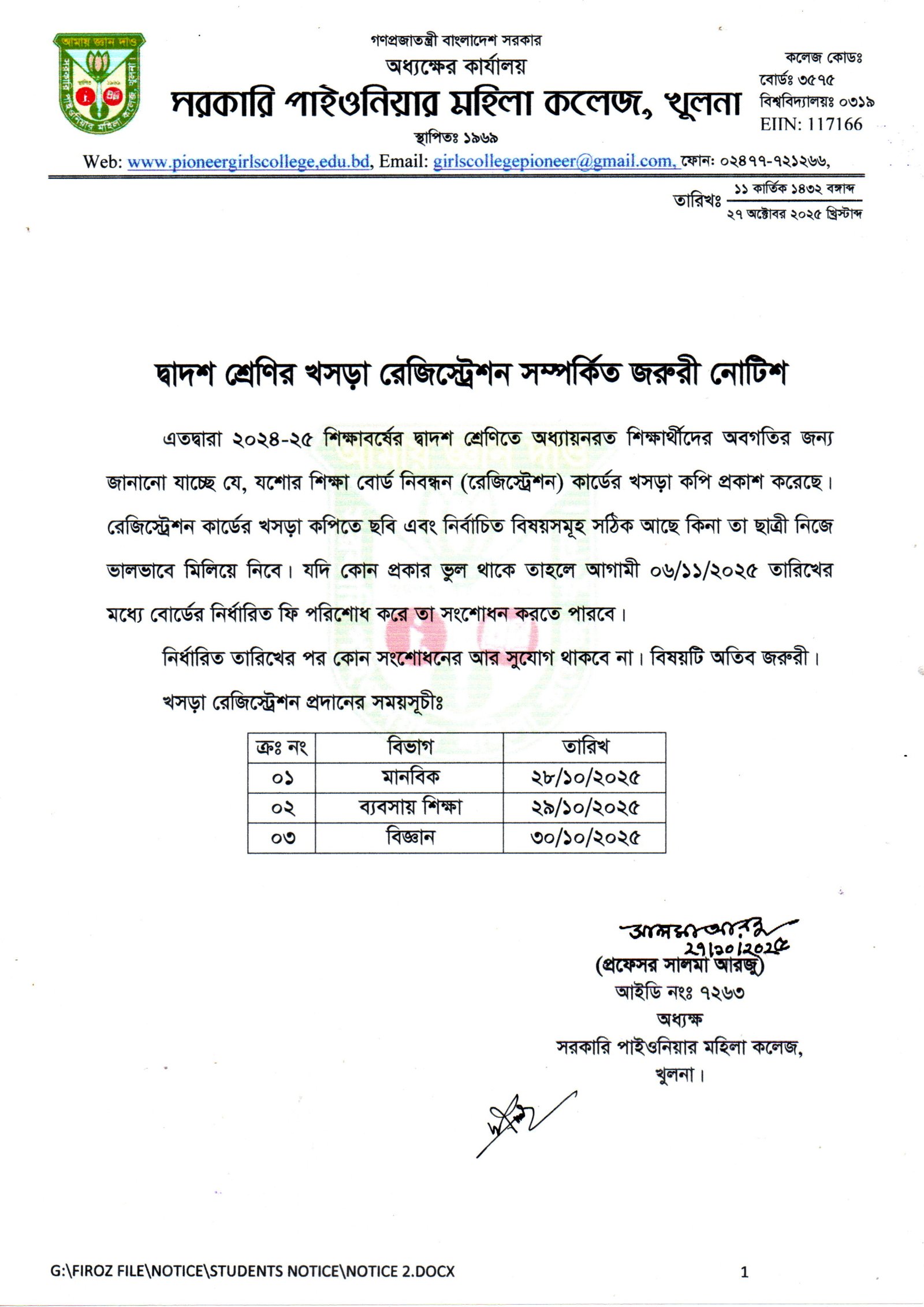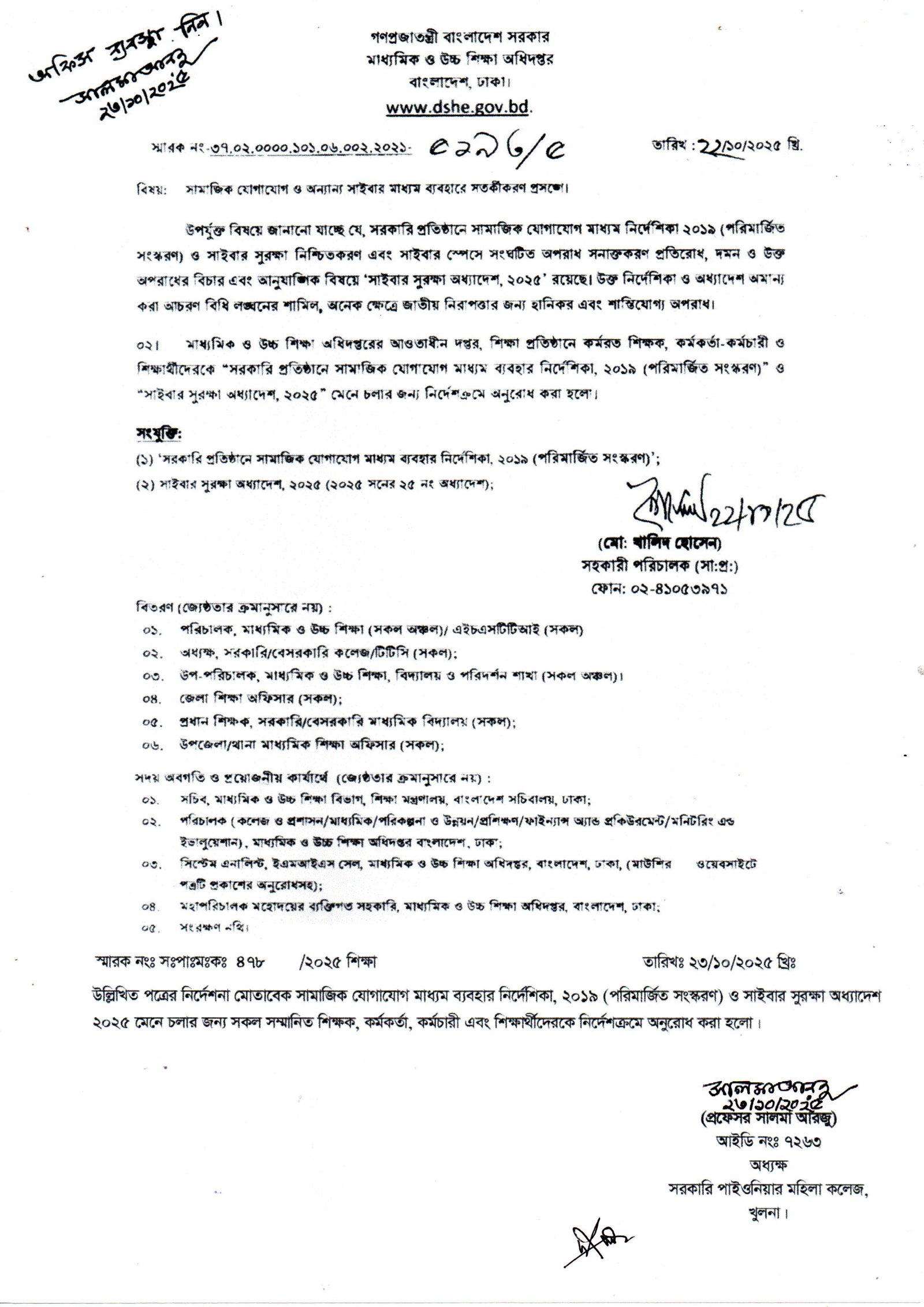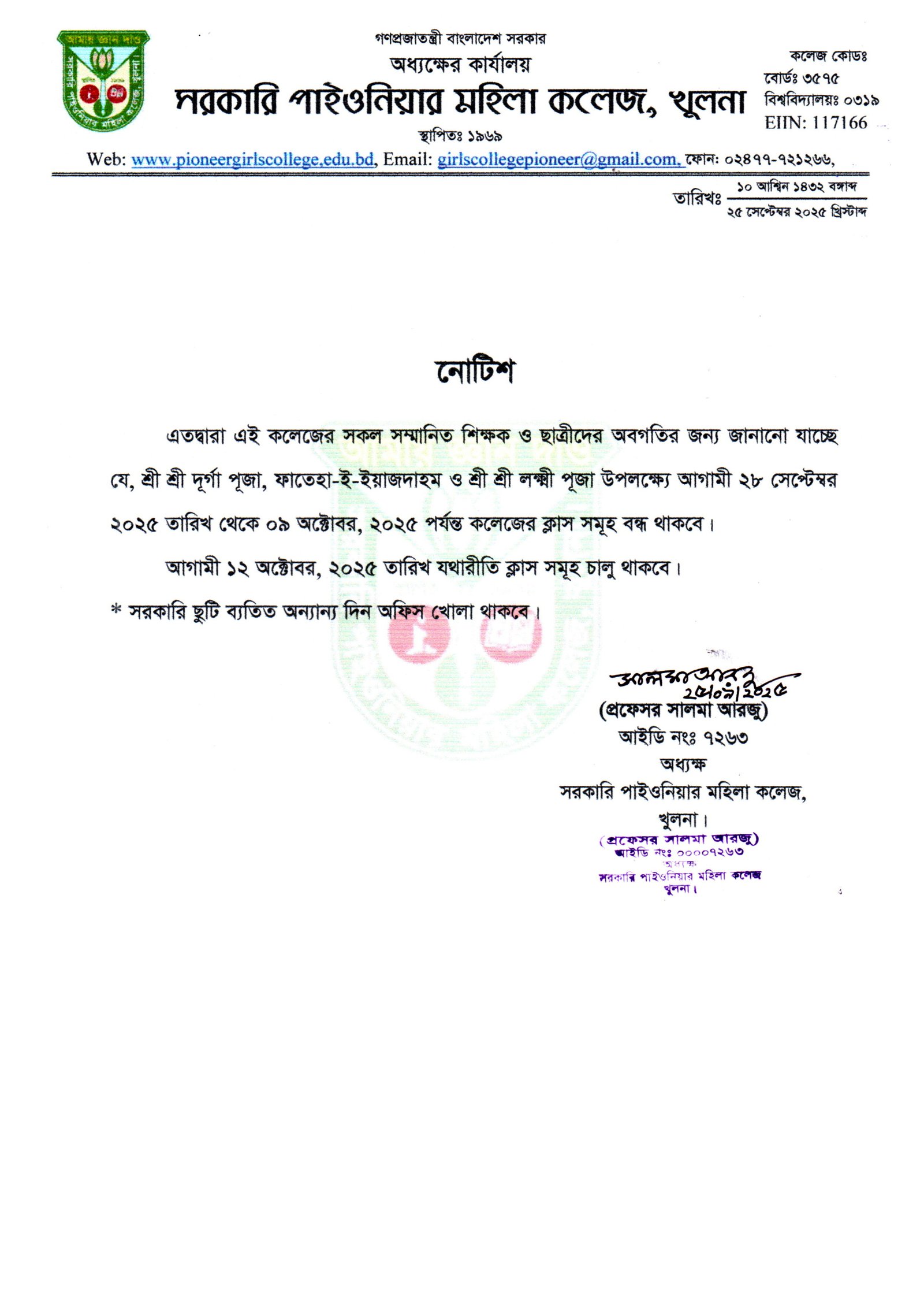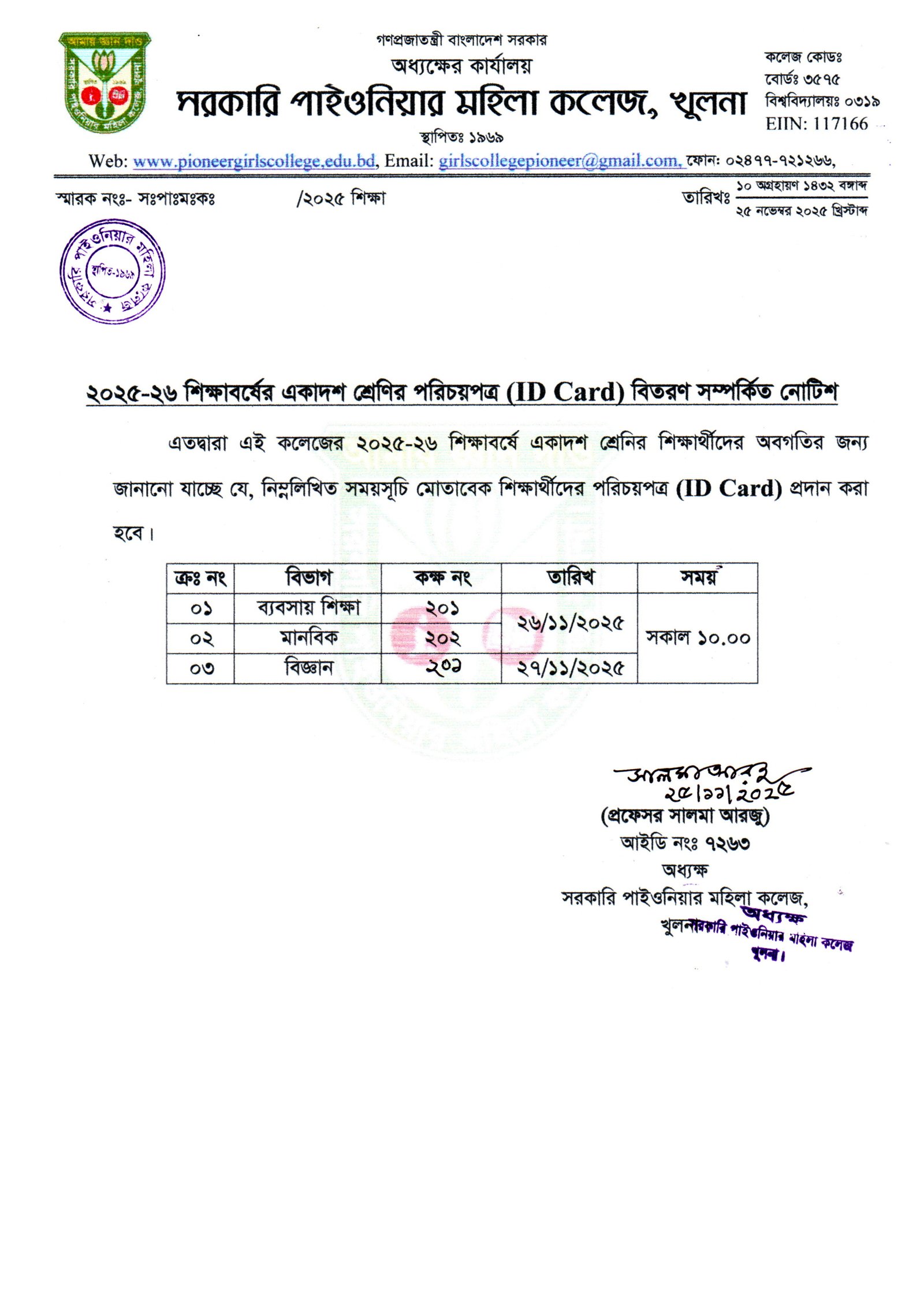 ২০২৫-২৬ শিক্ষাবর্ষের একাদশ শ্রেণির শিক্ষার্থীদের পরিচয়পত্র প্রদান সম্পর্কে নোটিশ |