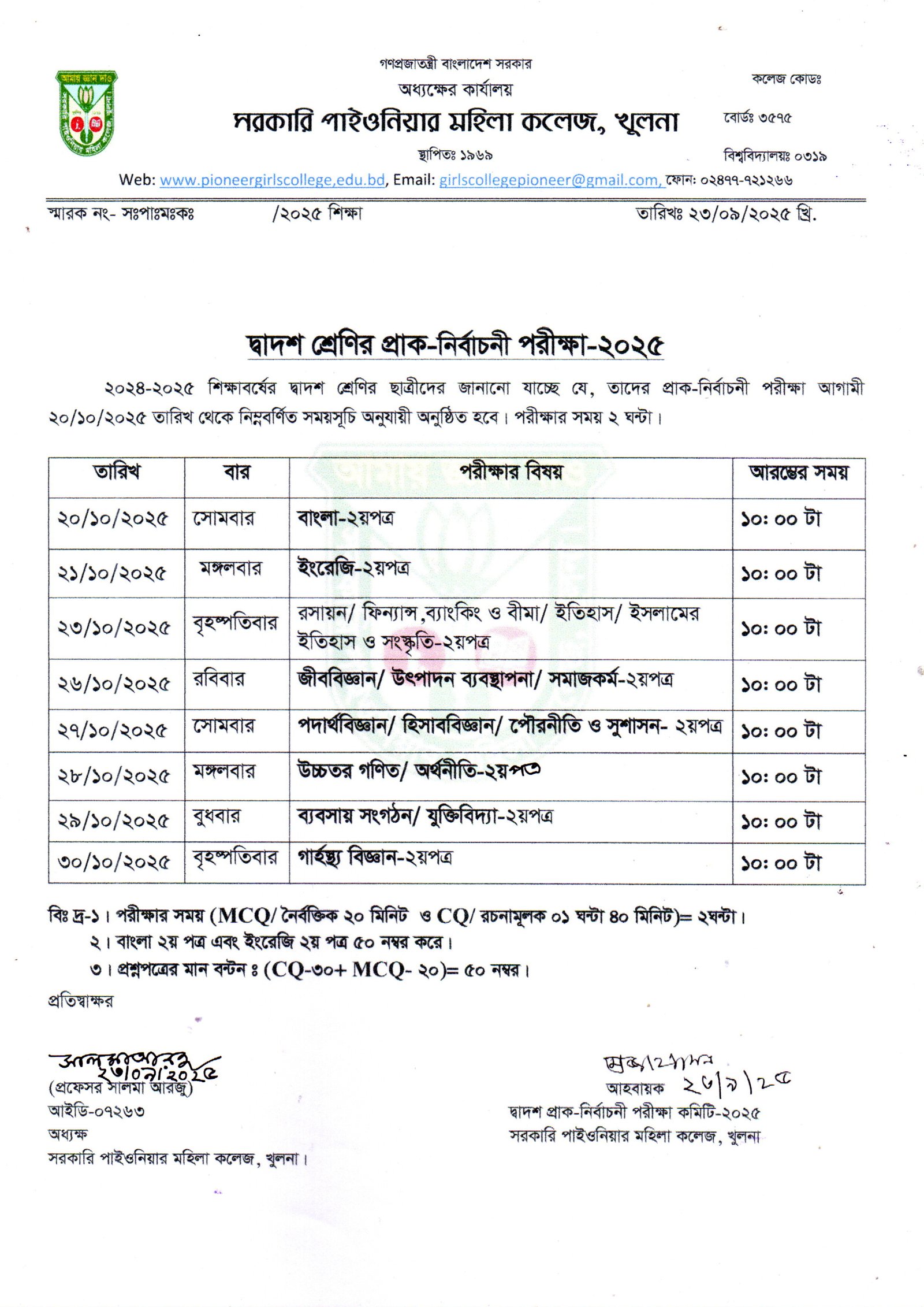 দ্বাদশ শ্রেণির প্রাক-নির্বাচনী পরীক্ষা-২০২৫ সংক্রান্ত নোটিশ